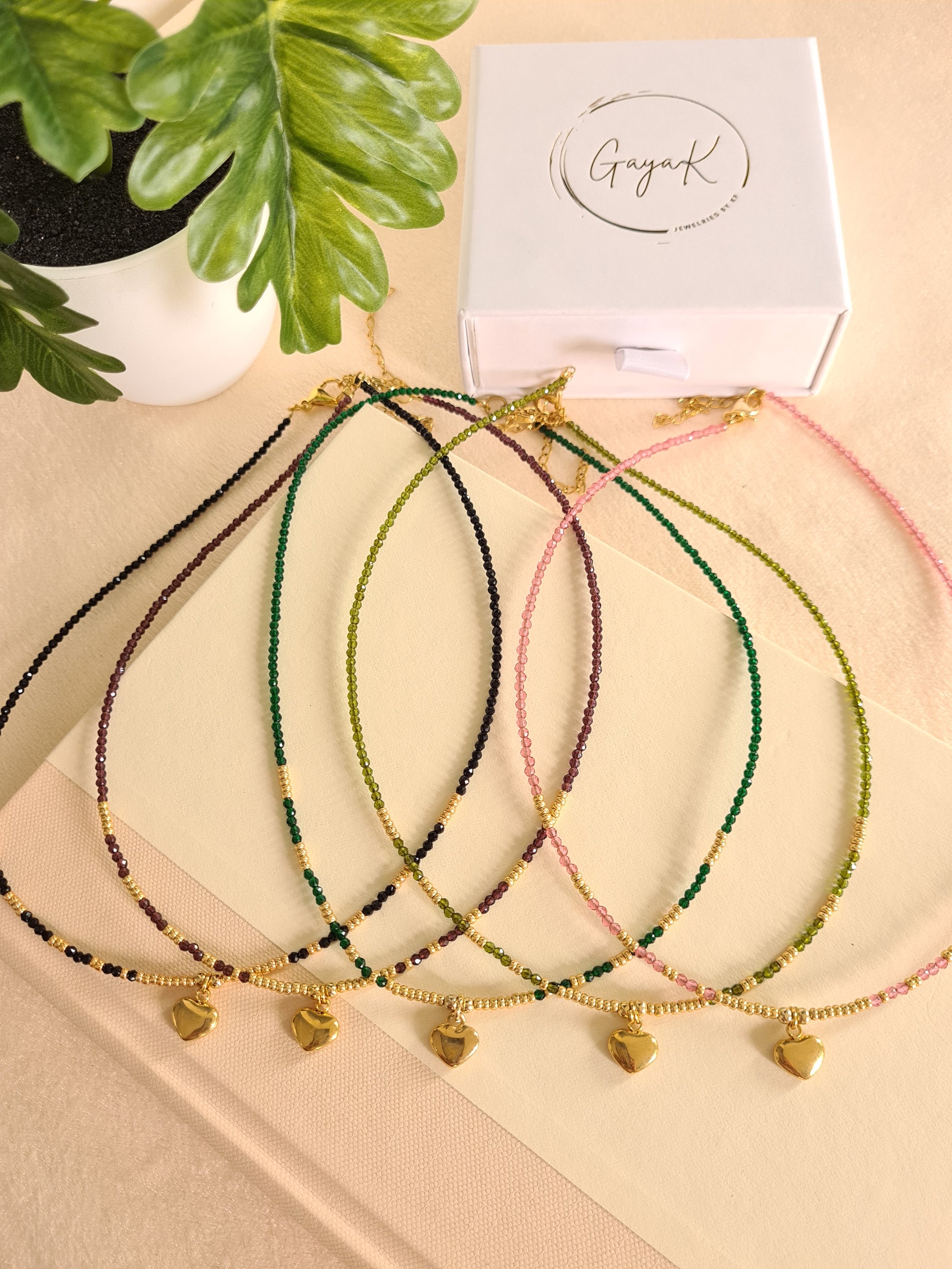 Choose from a variety of colors, including pink, olive green, green, purple, black, red, blue, and teal, to complement handcrafted Czech crystals and gold beads on gold plated stainless steel hardware.
