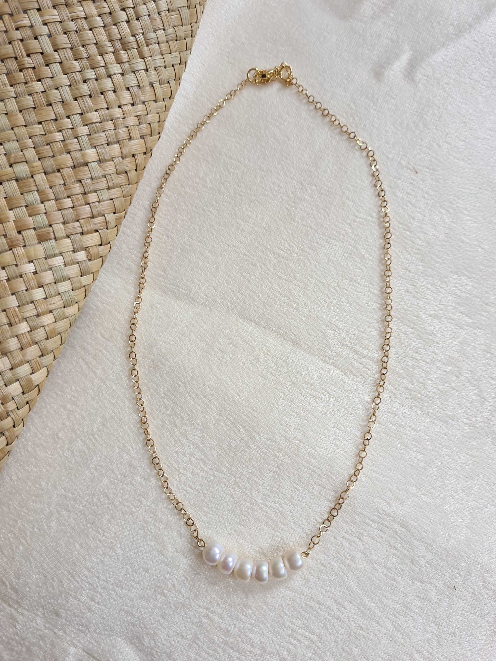 This necklace features lustrous, high-quality freshwater pearls set in gold plated and stainless steel hardware. Measuring 50 centimeters in length with an additional 6 centimeters of extender, it's the perfect accessory for any occasion.