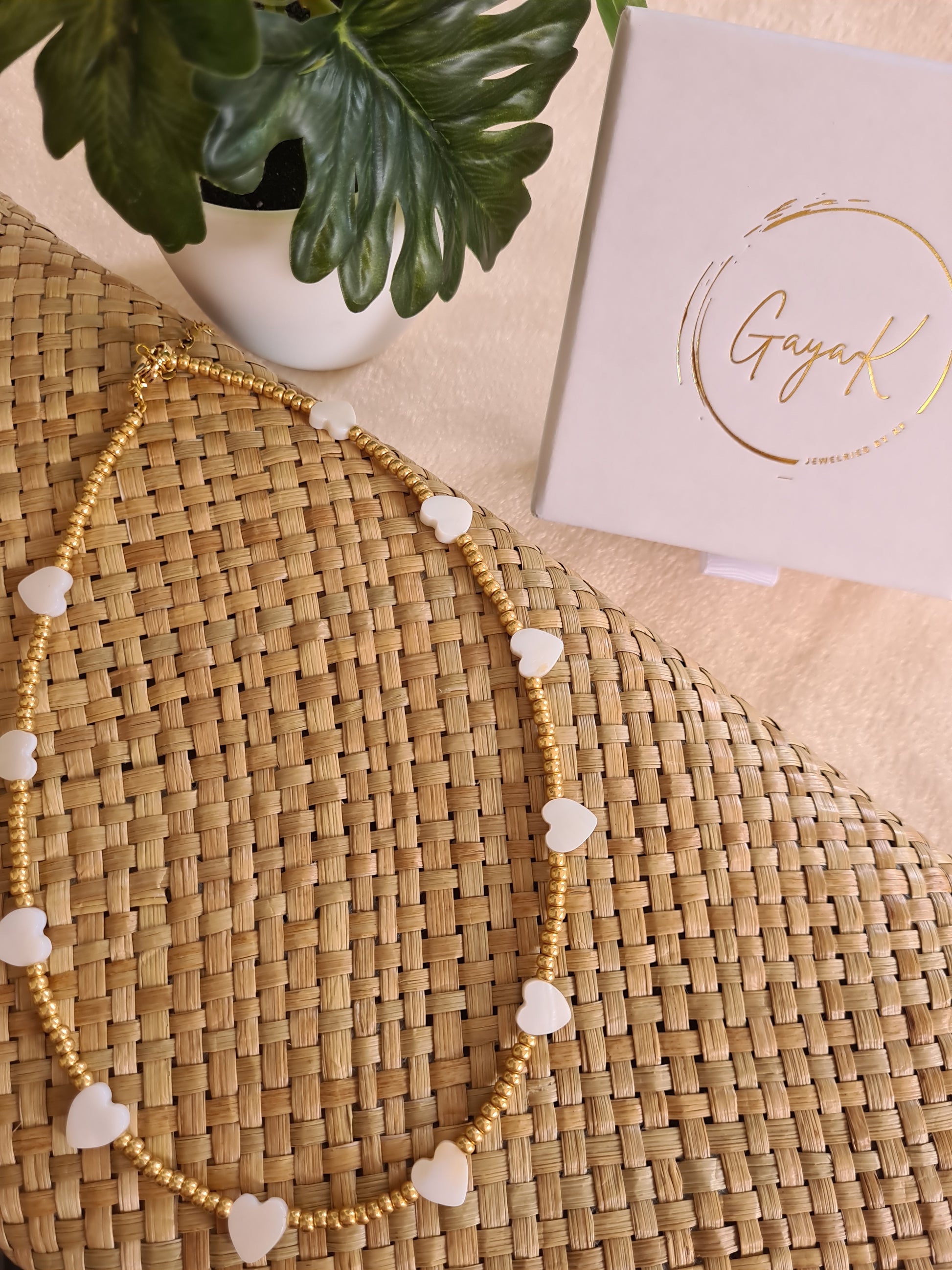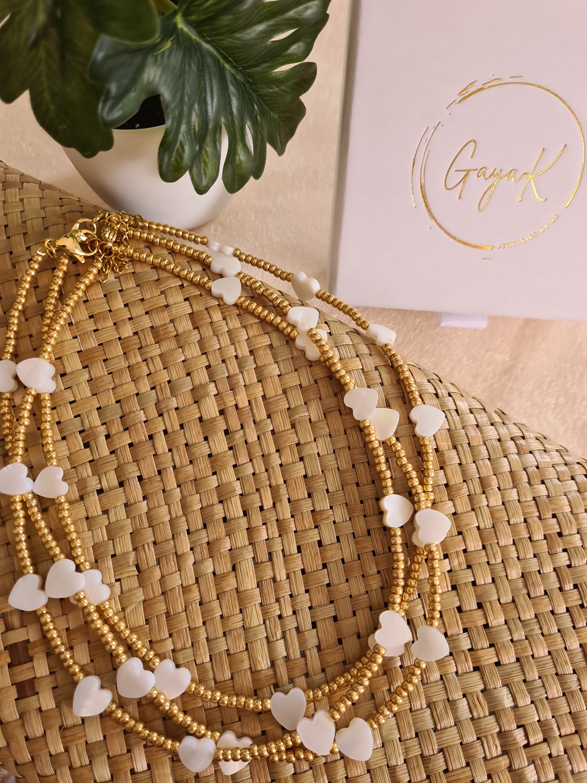 Experience the thrill of a lifetime with our handcrafted Necklace featuring radiant mother of pearls and gleaming gold beads. Don't miss out on this unique and daring addition to your jewelry collection!