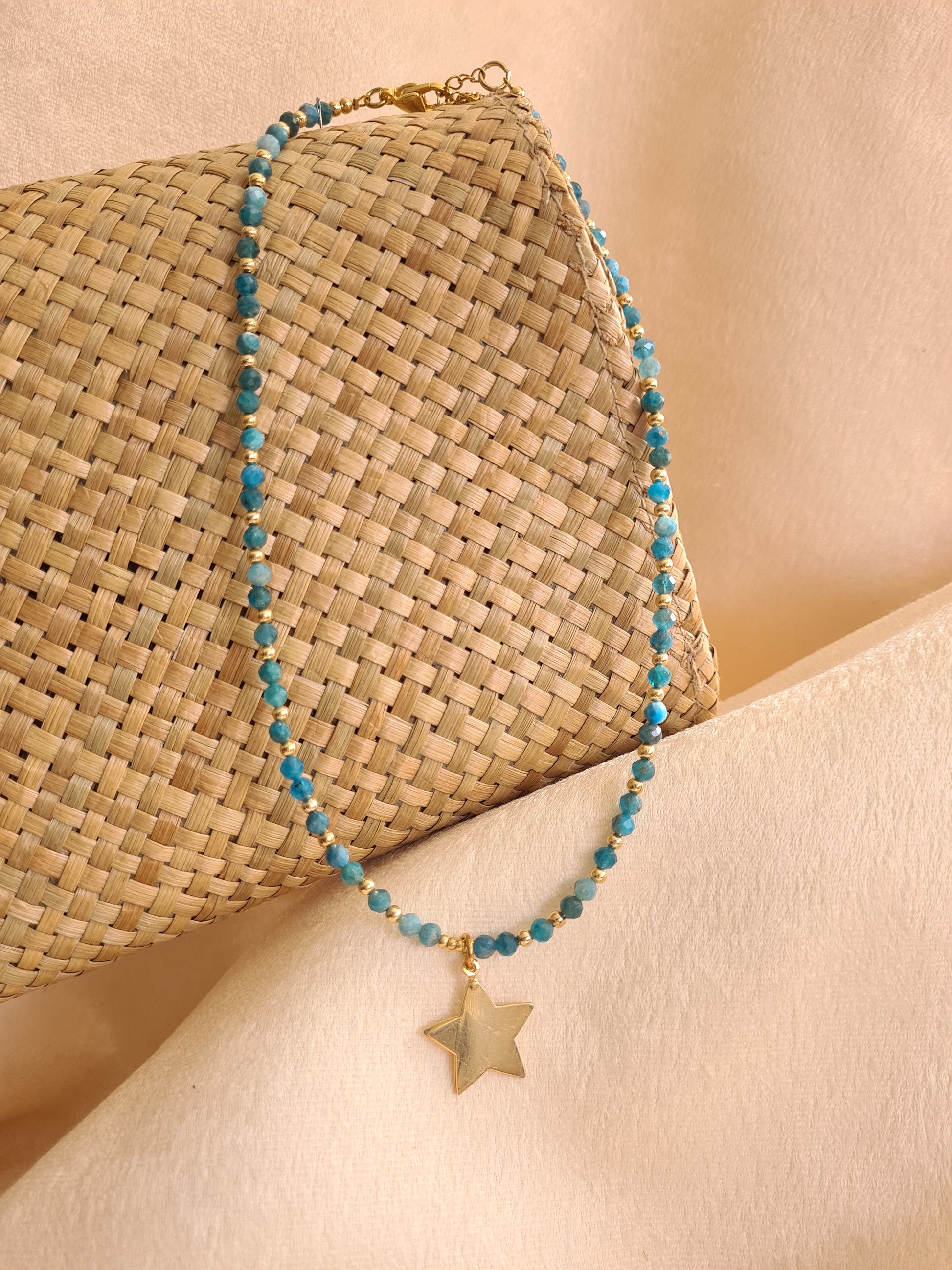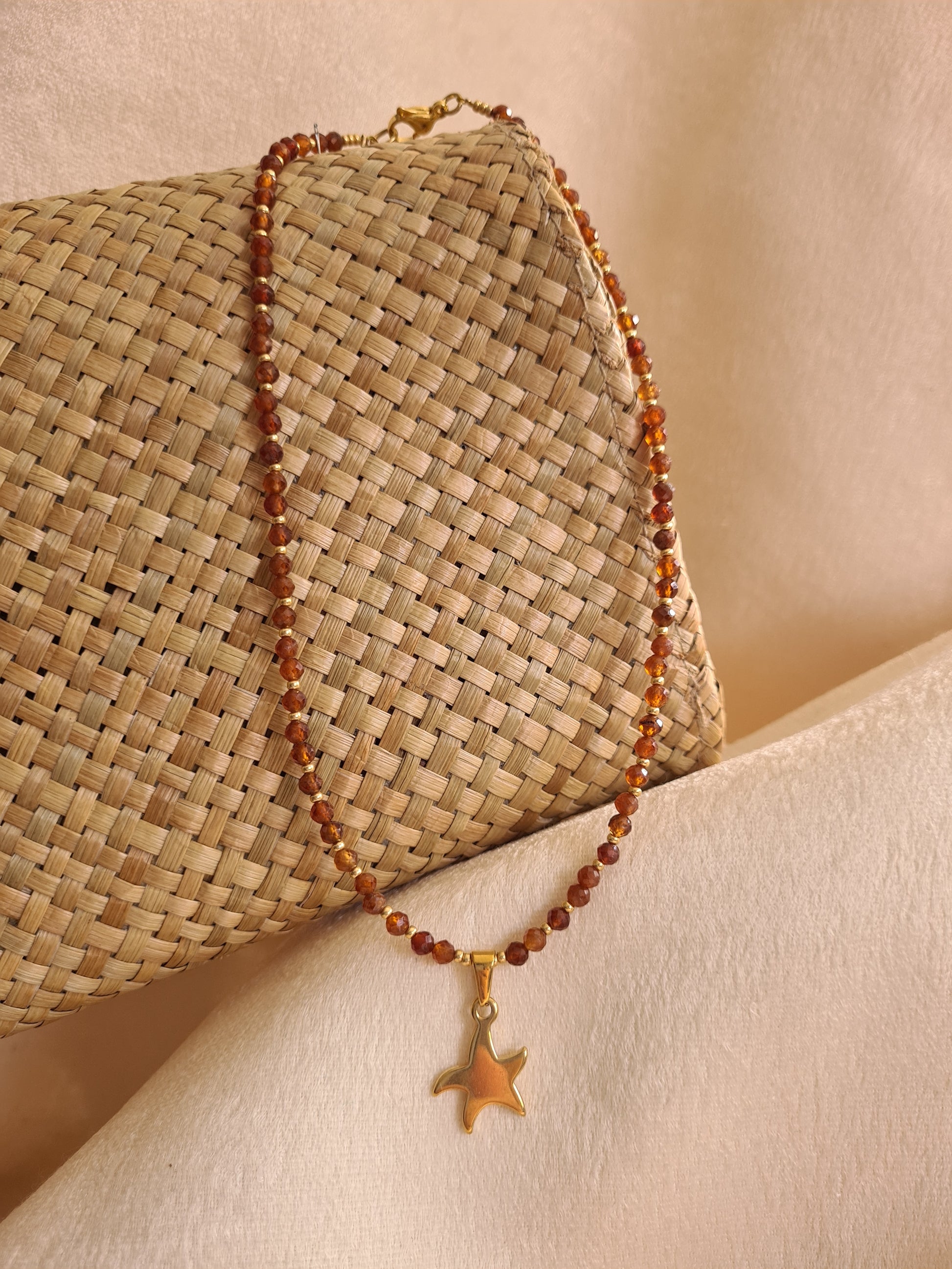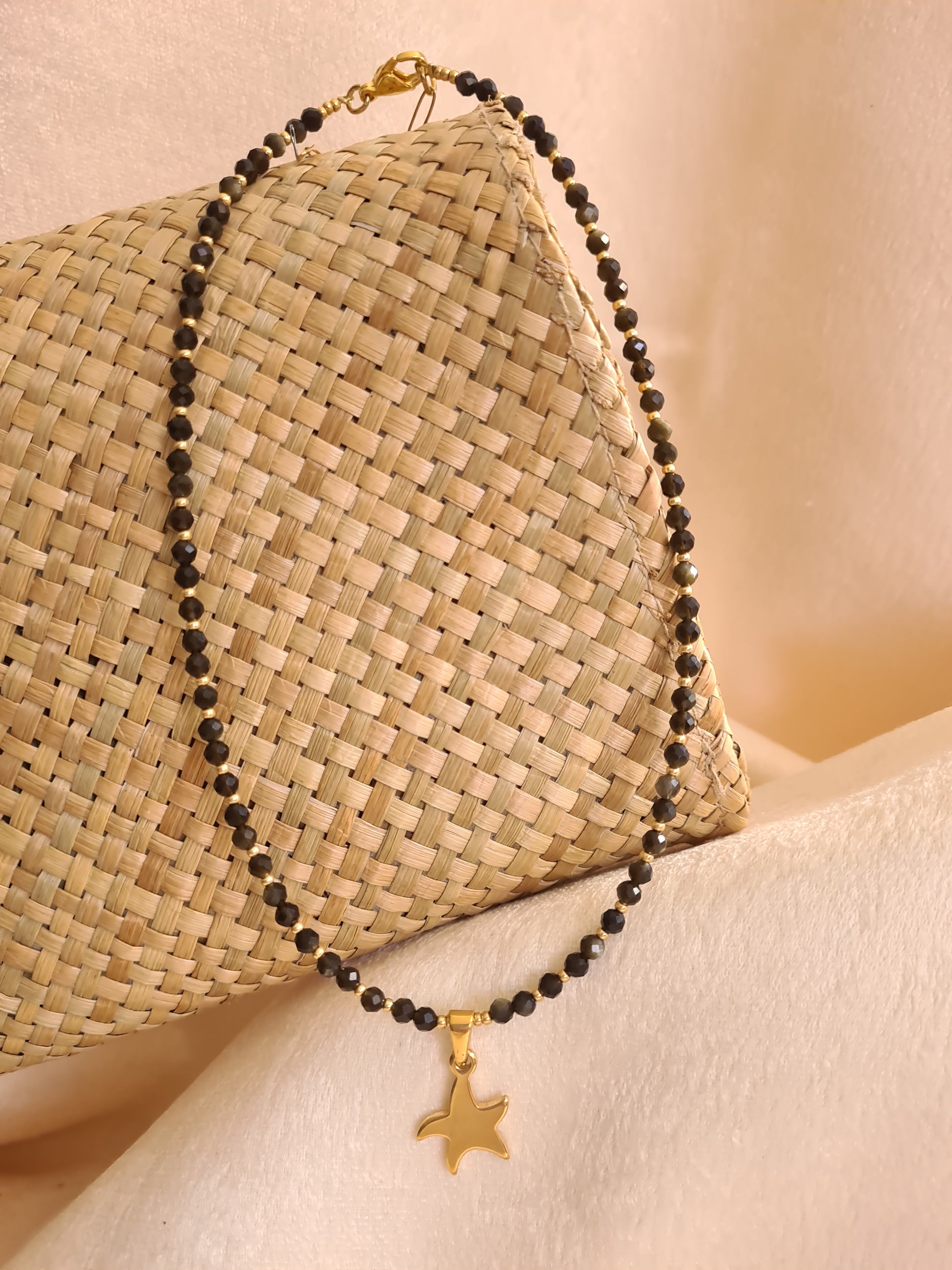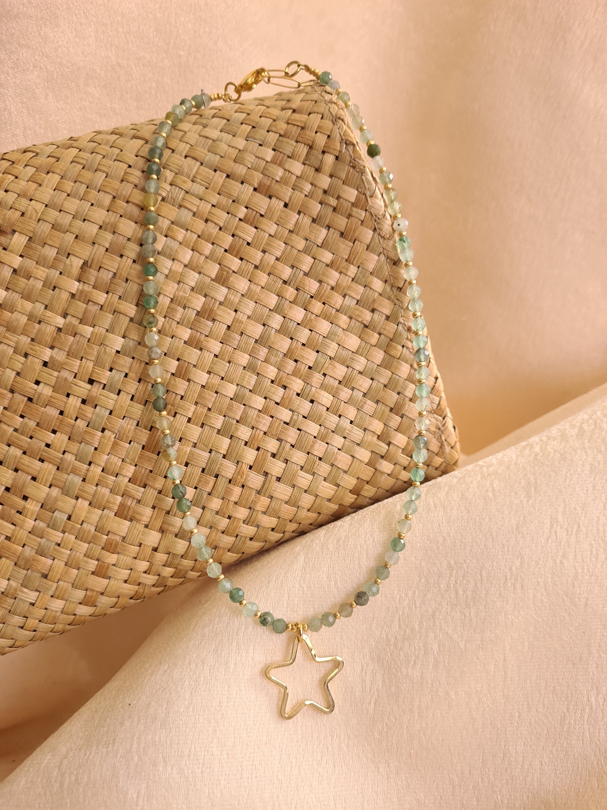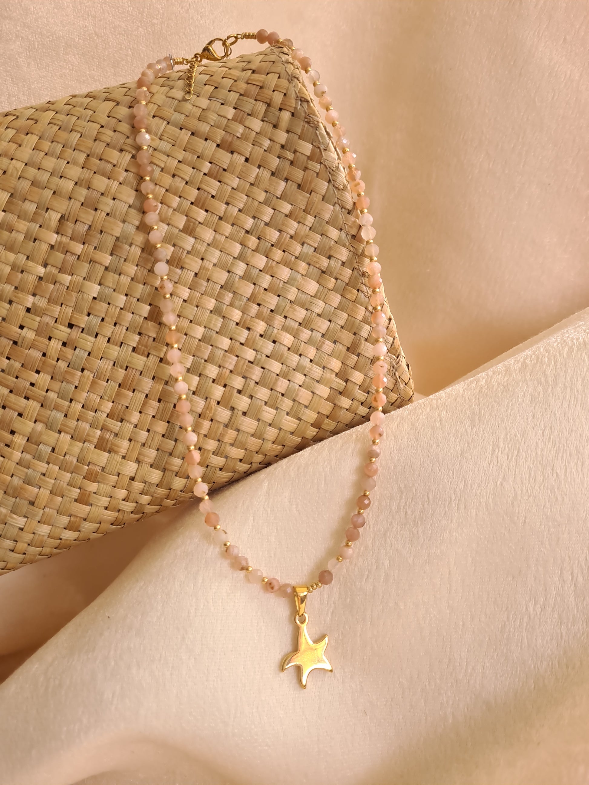 Lustrous semi-precious stones, paired with premium gold-plated and stainless steel hardware, adorn this 42-centimeter necklace with a 6-centimeter extender. Elevate your style with our elegant and daring choice of either a star or heart pendant.