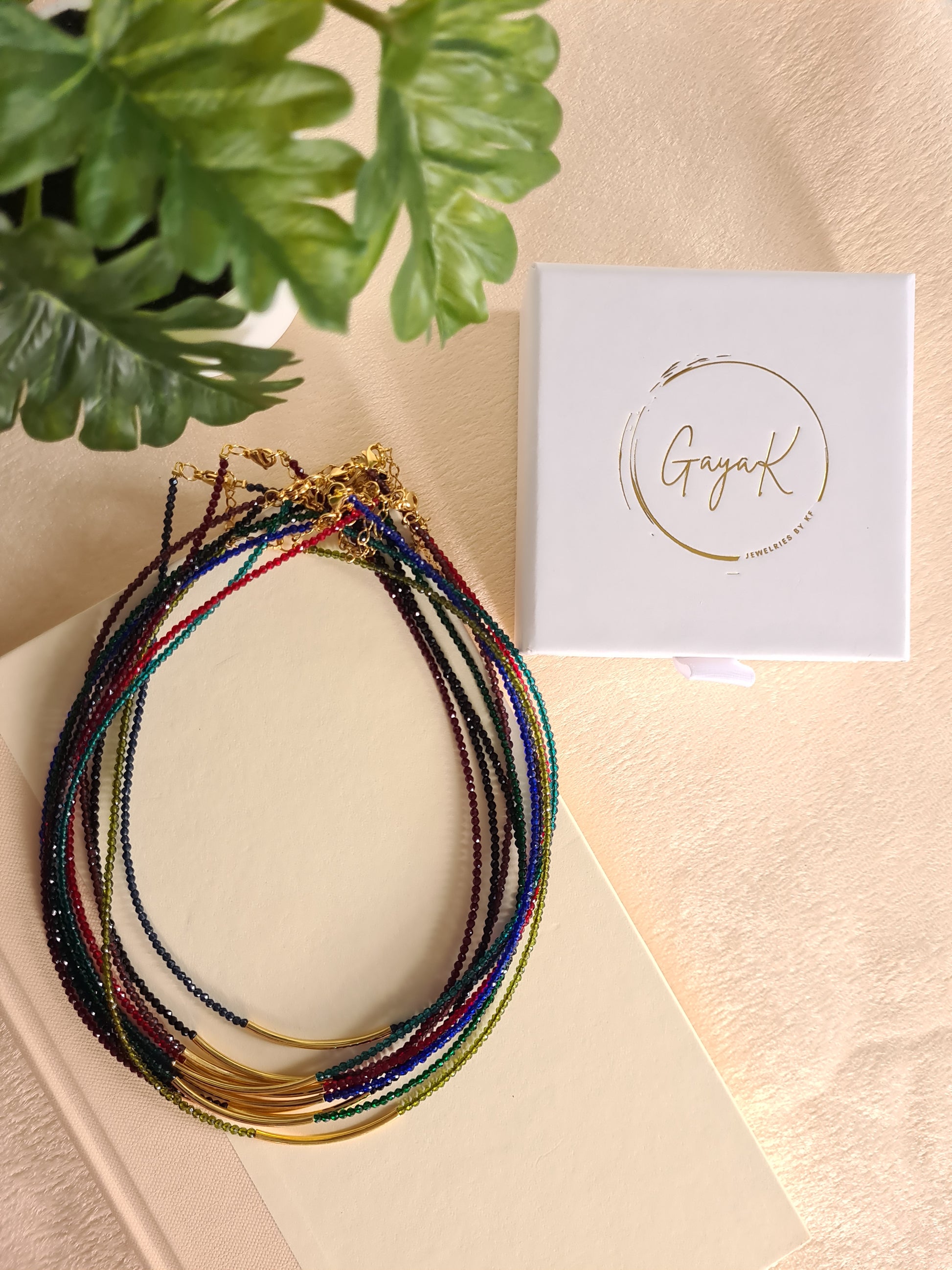 Crafted with hand-selected semi precious stones and lustrous freshwater pearls, this unique and expertly made product features gold plated stainless steel hardware. Available in a range of stunning colors including green, emerald, siam, black, amethyst, olivine, and montana blue.