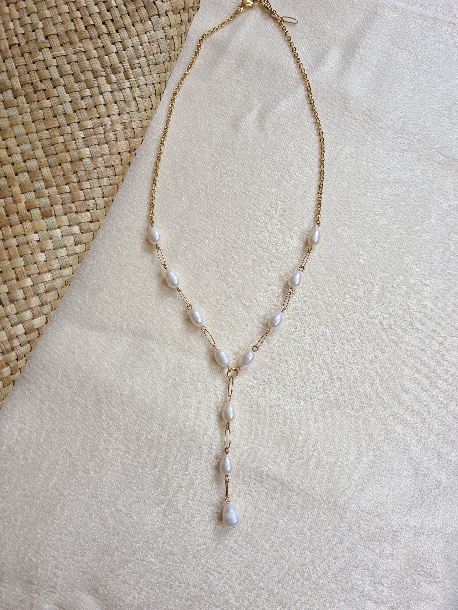 Dreamily luxurious, this gold plated and stainless steel necklace features a fresh water pearl and measures 54 centimeters with a 6 centimeters extender.