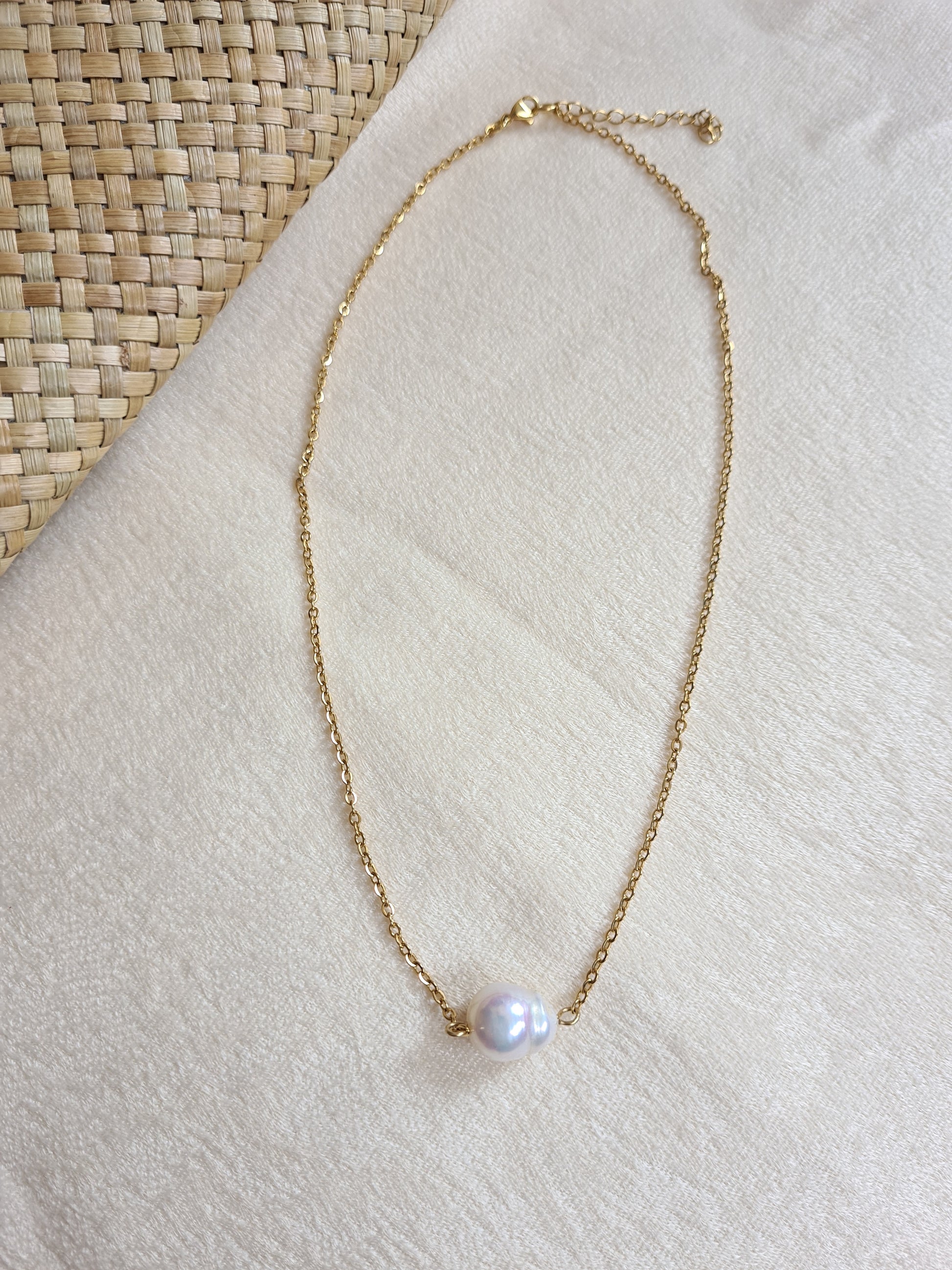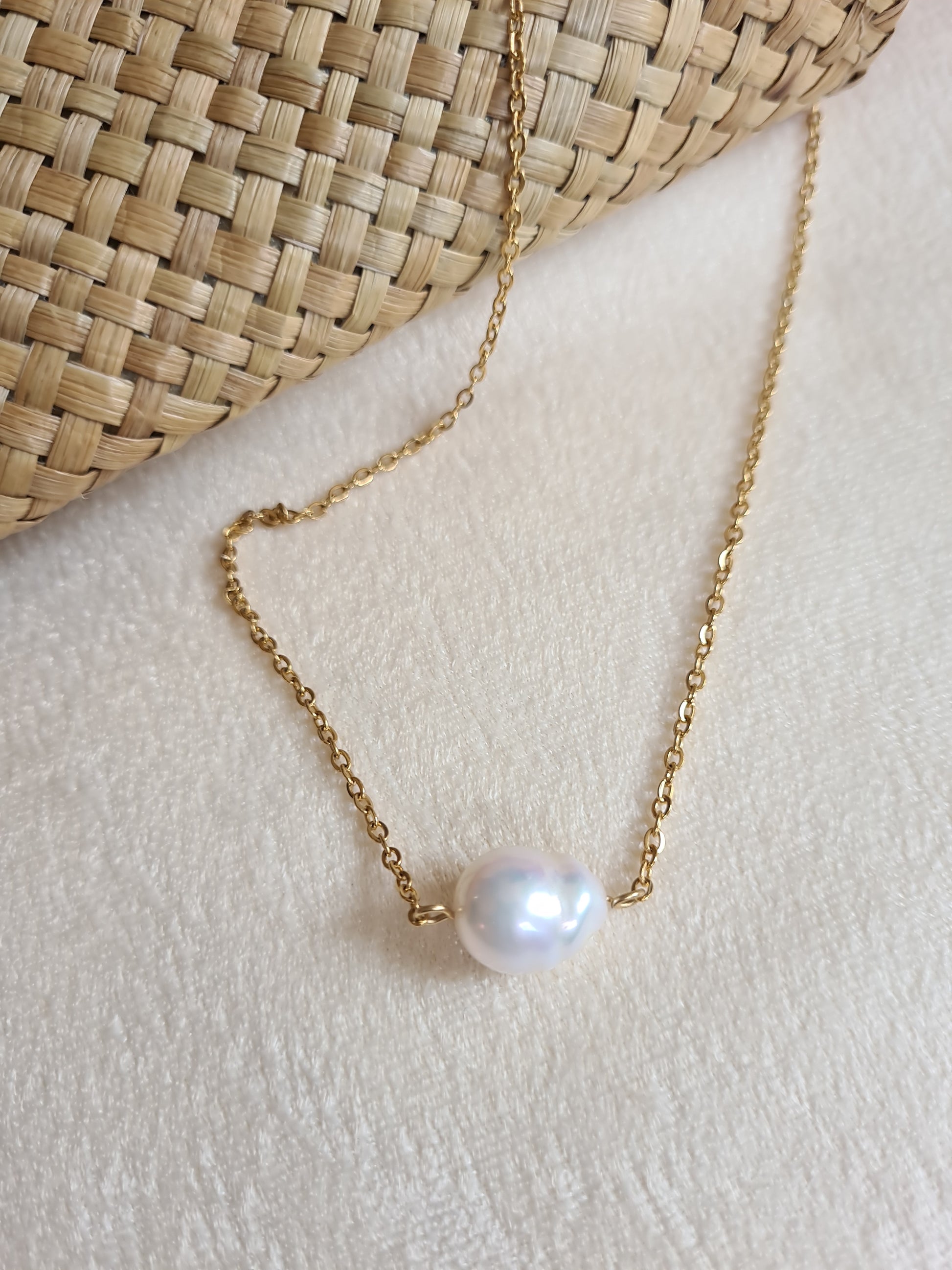 Explore the thrill of the unknown with our stunning mother of pearl pendant necklace, featuring a daring blend of gold plating and stainless steel.